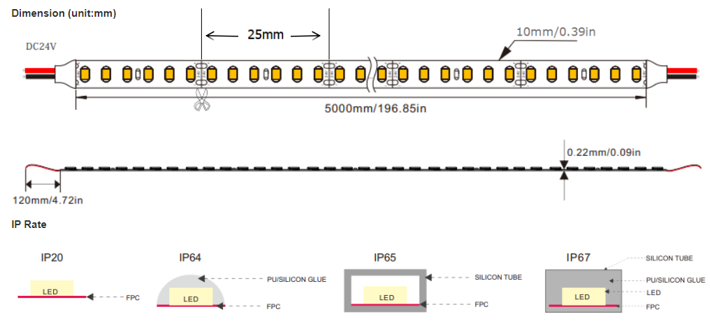 5 different waterproof types :IP20,IP54, IP65, IP67,IP68